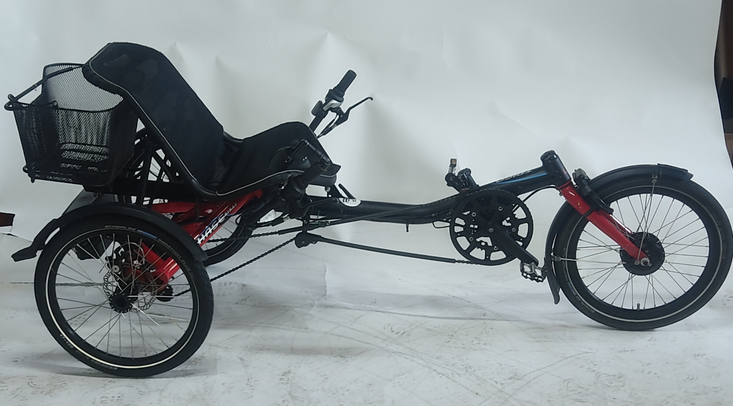 Deze praktische Hase trigo trike heeft ondersteuning in het voorwiel. Verder is hij voorzien van een handig mandje achterop voor je boodschappen, spiegel en slot. Kortom de ideale ligfiets voor de boodschappen of de wat langere fiets tocht. Uiteraard krijg je een half jaar garantie op de mooie trike